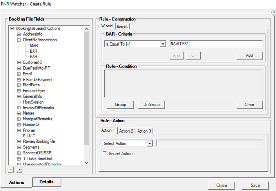 Our rule now states If BAR is equal to NAVITAS1 and DI.FT does not contain CC/.