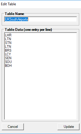 To edit a table, double click the table name from the PNR Watcher Maintain Tables screen, or select it and click Edit.