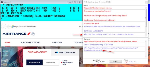 When I make a booking for traveller SMITH on Air France flight with DI.AC of 1234 and end my booking PNR Watcher responds with our alert and opens the Air France website